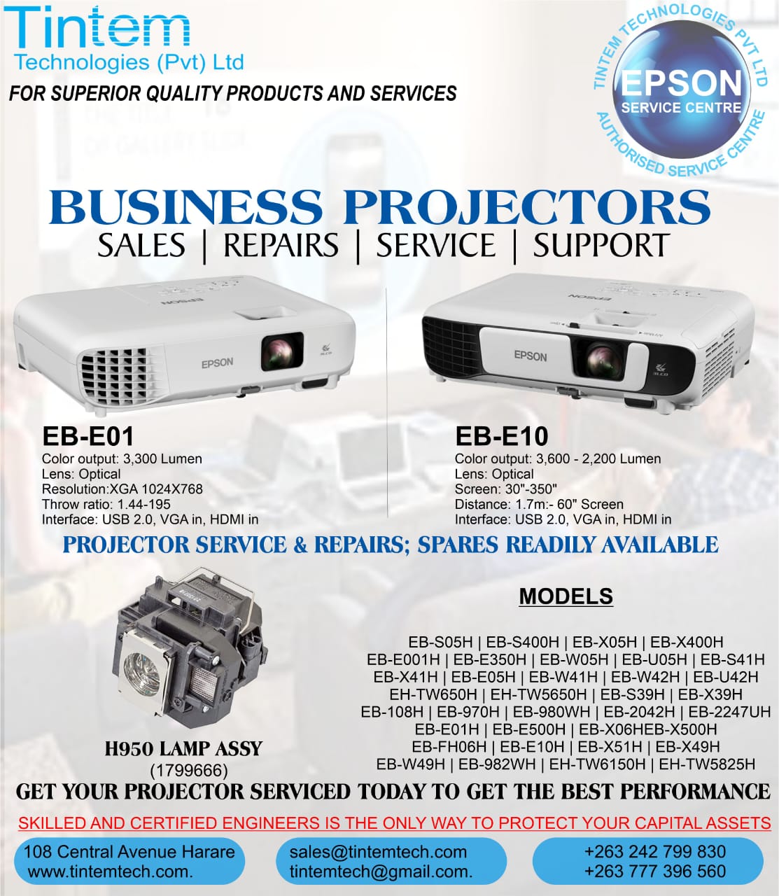 WE OFFER PROFESSIONAL TOPNOTCH PROJECTOR REPAIR, SERVICE AND SUPPORT ACROSS ZIMBABWE. ALL REPAIRS AND SERVICES COMES WITH WARRANTY